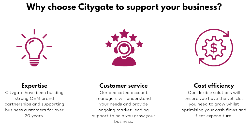 Citygate Leasing can support all your business vehicle leasing needs, from commercial vehicles to company cars. We offer flexible and affordable business contract hire (BCH) solutions tailored to your budget and company size. With nearly 20 years of expertise in retail and fleet services, our team provides personalised support and guidance every step of the way.