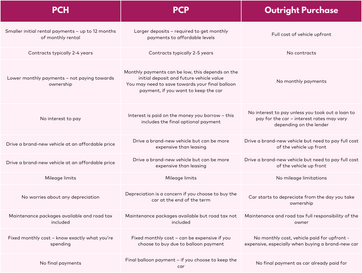 More and more people are looking at Personal Contract Hire instead of an Outright Purchase or Personal Contract Purchase (PCP) as it can prove to be a more cost-effective way of driving a new car.